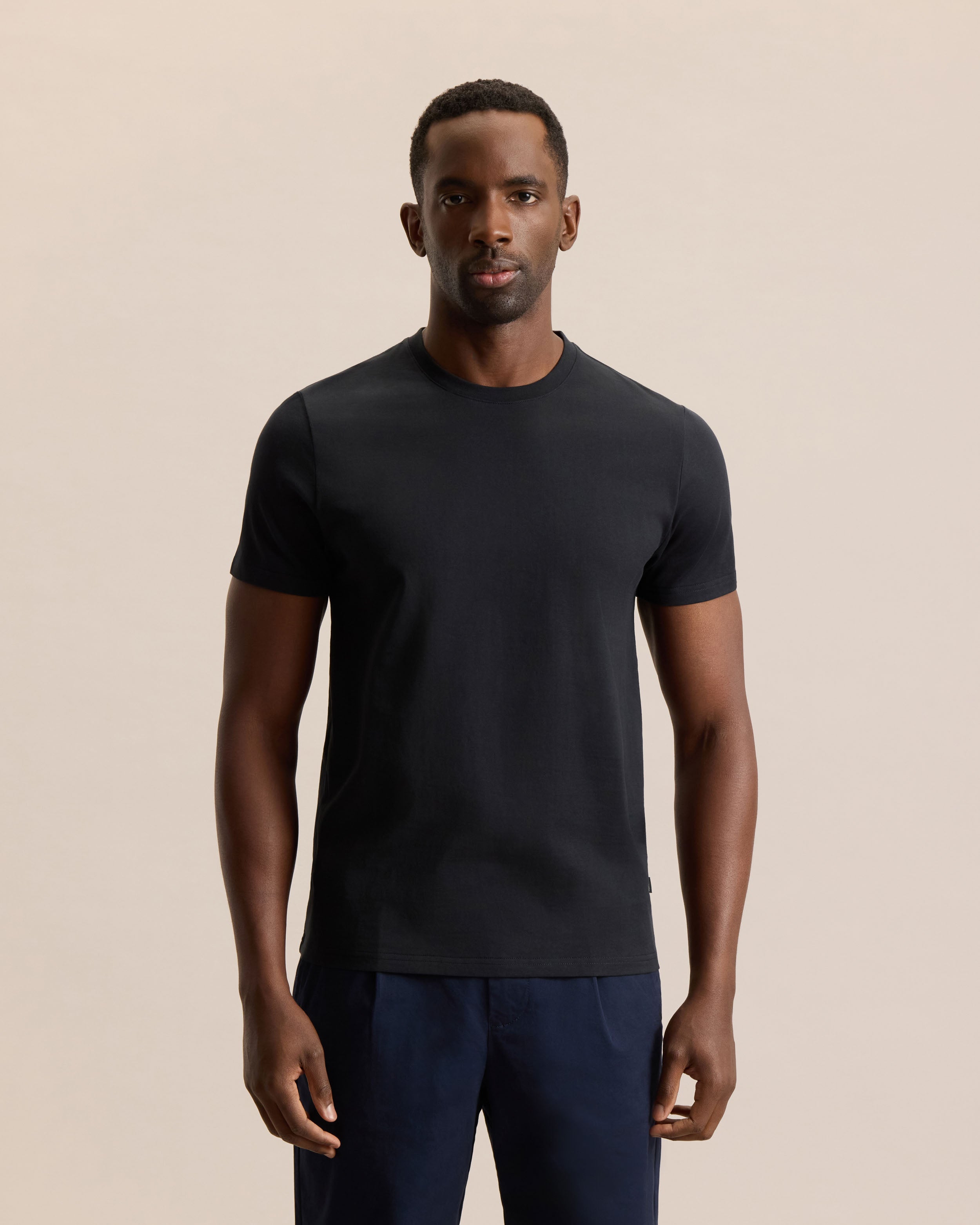 Meet the T-shirt designed to be the foundation of every great outfit. Crafted in a lighter 180gsm weight, it layers effortlessly without feeling bulky or restrictive, making it the ideal base under shirts, sweaters, or jackets. Made from 100% cotton, it delivers a natural breathability, softness, and hypoallergenic comfort. A stay-stitched neckline ensures the collar lies flat and keeps its shape, resisting curling or folding over time.