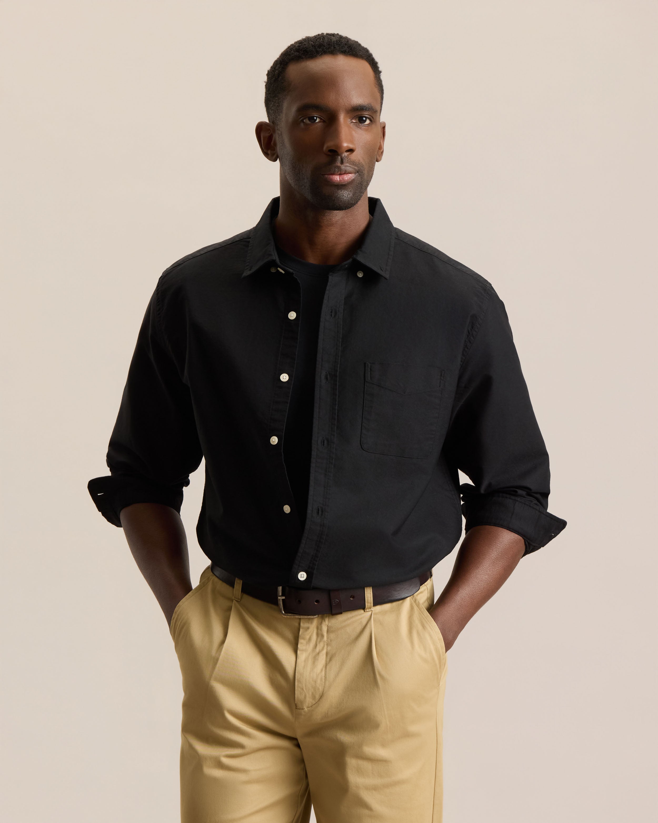 An iconic Frank and Oak essential, the Jasper Shirt is our take on the classic cotton Oxford, a style that originated in 19th century Scotland where weavers created four fabrics named after universities (Oxford, Cambridge, Yale, Harvard), with the durable, breathable Oxford weave becoming the most popular. It gained popularity with British polo players, who added buttons to their collars to prevent flapping during matches. Cut in our Classic fit, it's a timeless wardrobe staple we always carry and should always be in your rotation.