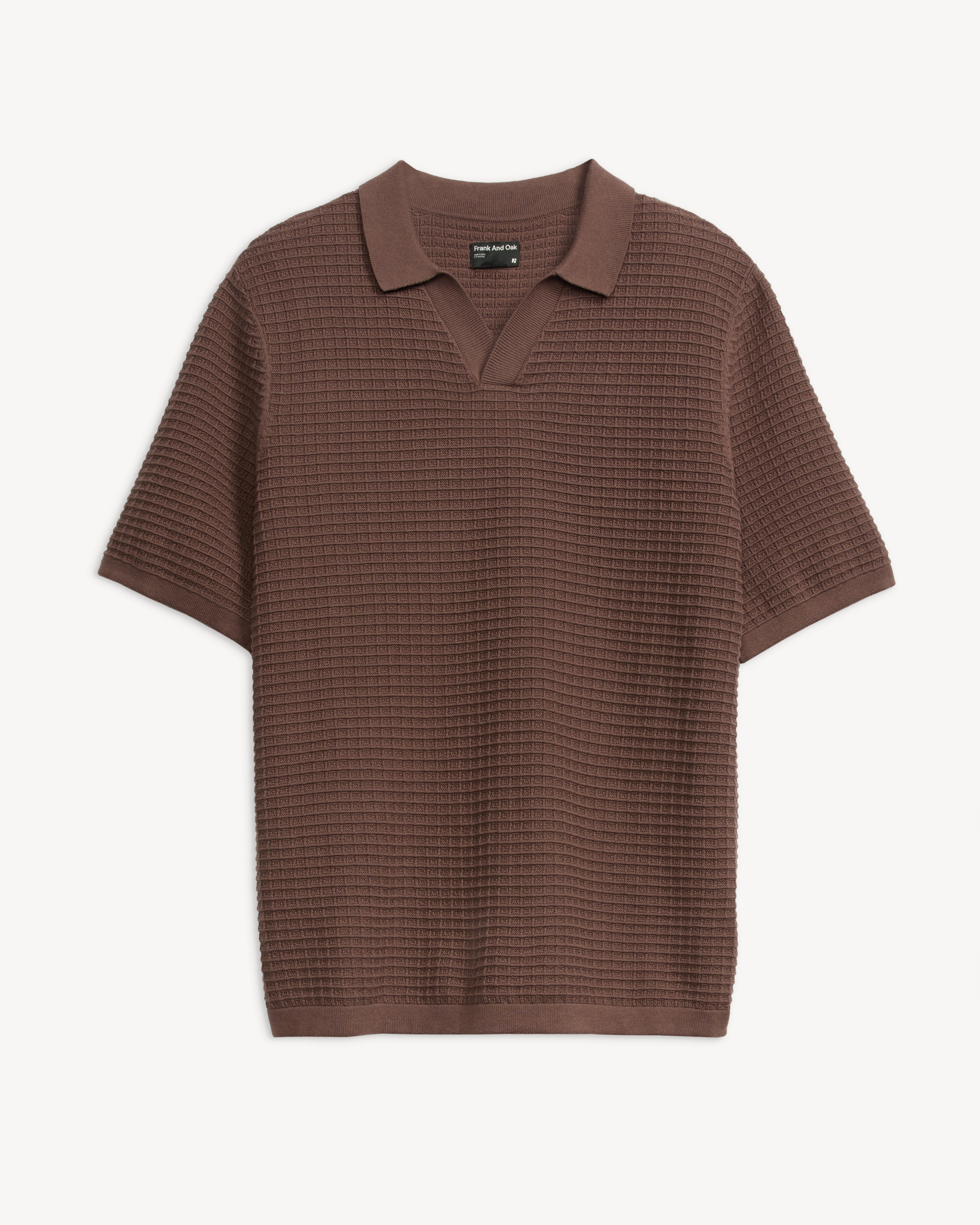 Designed in a regular fit, this knitted Johnny Collar style moves comfortably with the body and delivers a clean silhouette for everyday wear. The Johnny collar, a style popularized in the 1960s and known for its laid-back appeal, offers a more relaxed alternative to a traditional polo. The waffle knit texture adds subtle dimension, while staying breathable and comfortable.